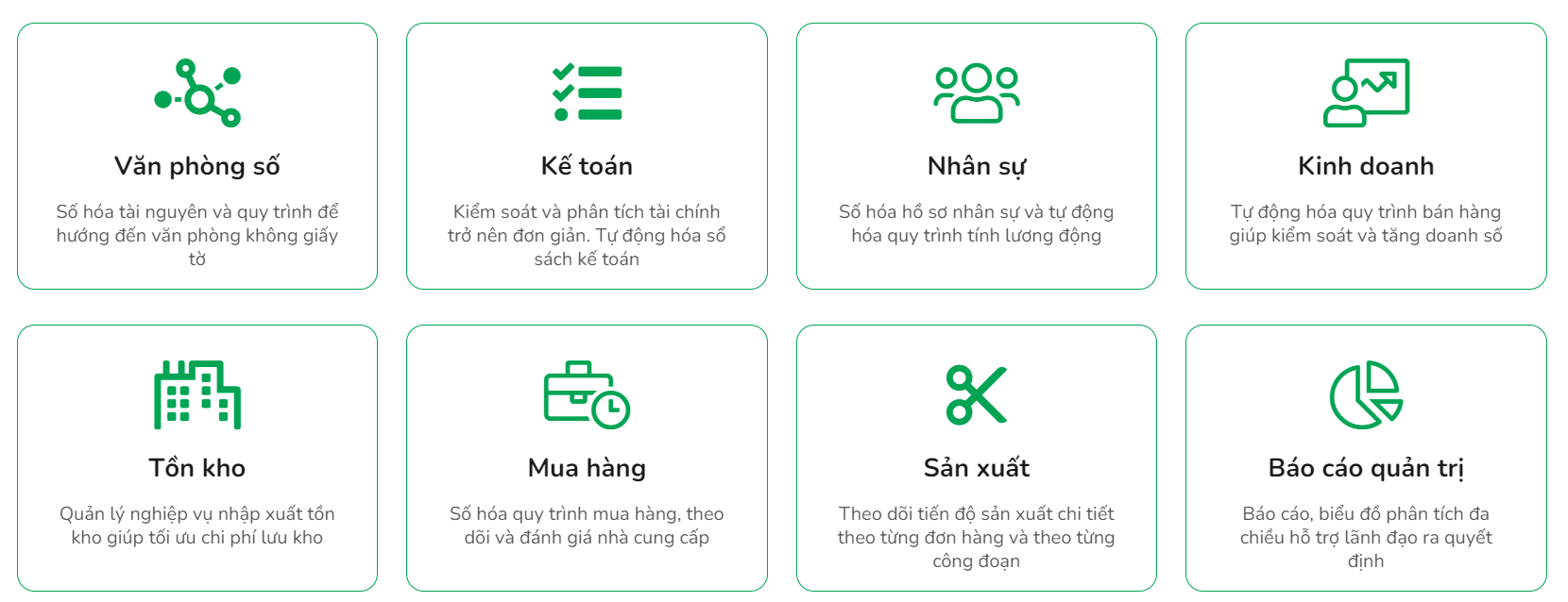Lần đầu tiên Doanh nghiệp có thể tự thêm/bớt các chức năng theo nhu cầu sử dụng ở từng giai đoạn phát triển.